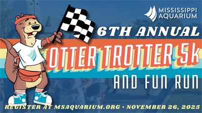 Join Bayou the Otter the day before Thanksgiving, November 26, 2025 for the 6th Annual Otter Trotter 5K and Fun Run.