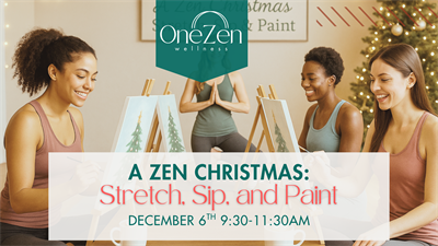 Find your calm and creativity this holiday season at A Zen Christmas: Stretch, Sip & Paint — a festive morning of yoga, refreshments, and guided painting led by our talented instructor Reann Parker.