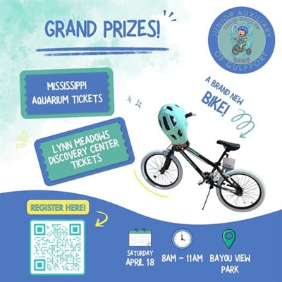 Junior Auxiliary of Gulfport's Healthy Living Committee is excited to invite you to a fun new event you won't want to miss, Trike With Us! Children ages 2-11 are invited to ride laps around Bayou View Park, have fun, and win prizes at the Junior Auxiliary of Gulfport Trike-a-Thon.