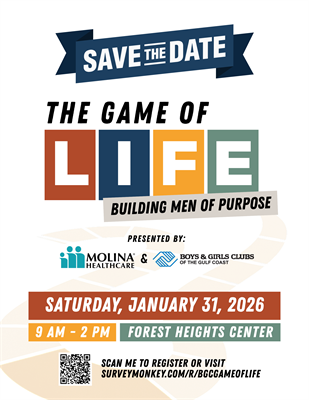 Boys & Girls Clubs of the Gulf Coast is excited to share that we will be hosting The Game of Life: Building Men of Purpose Conference for middle and high school boys (10-18) on Saturday, January 31, 2026, at the Forest Heights Center. This conference is designed to empower young men through mentorship, leadership development, and engaging hands-on sessions.